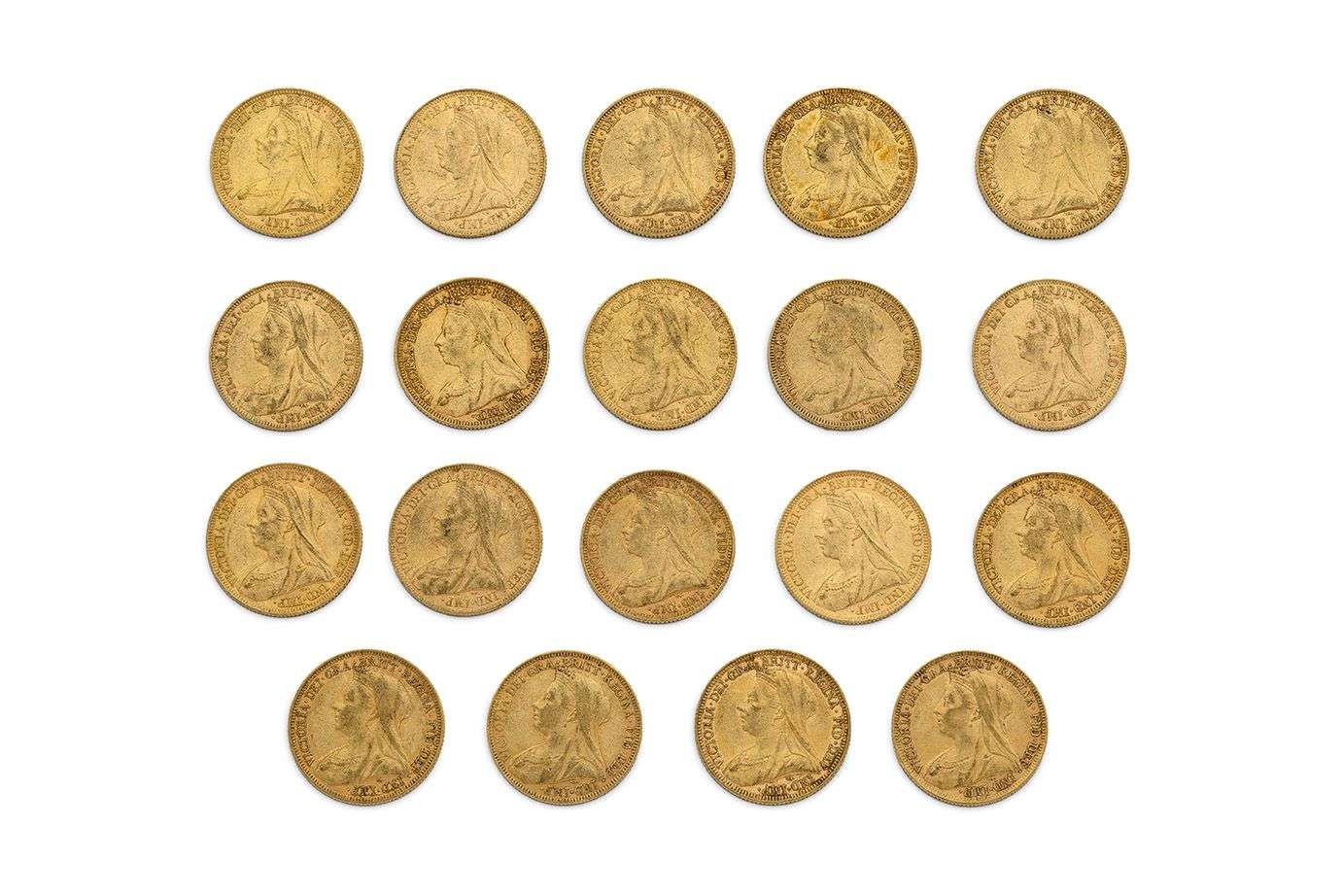 19 pièces or - Souverain - Victoria (Tête voilée)