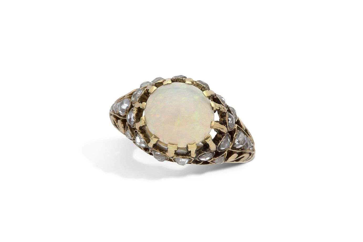 Cabochon d'opale et diamants taille rose