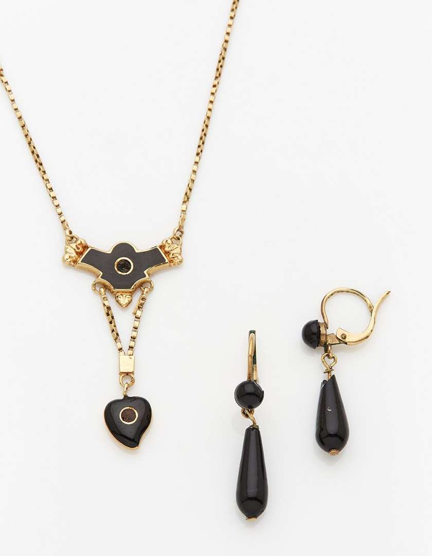 On y joint une paire de pendants d'oreilles en métal doré ~