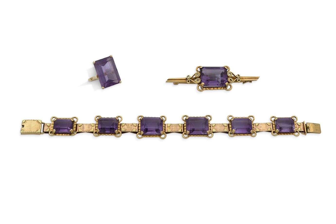 Améthystes rectangulaires, or 18k (750)