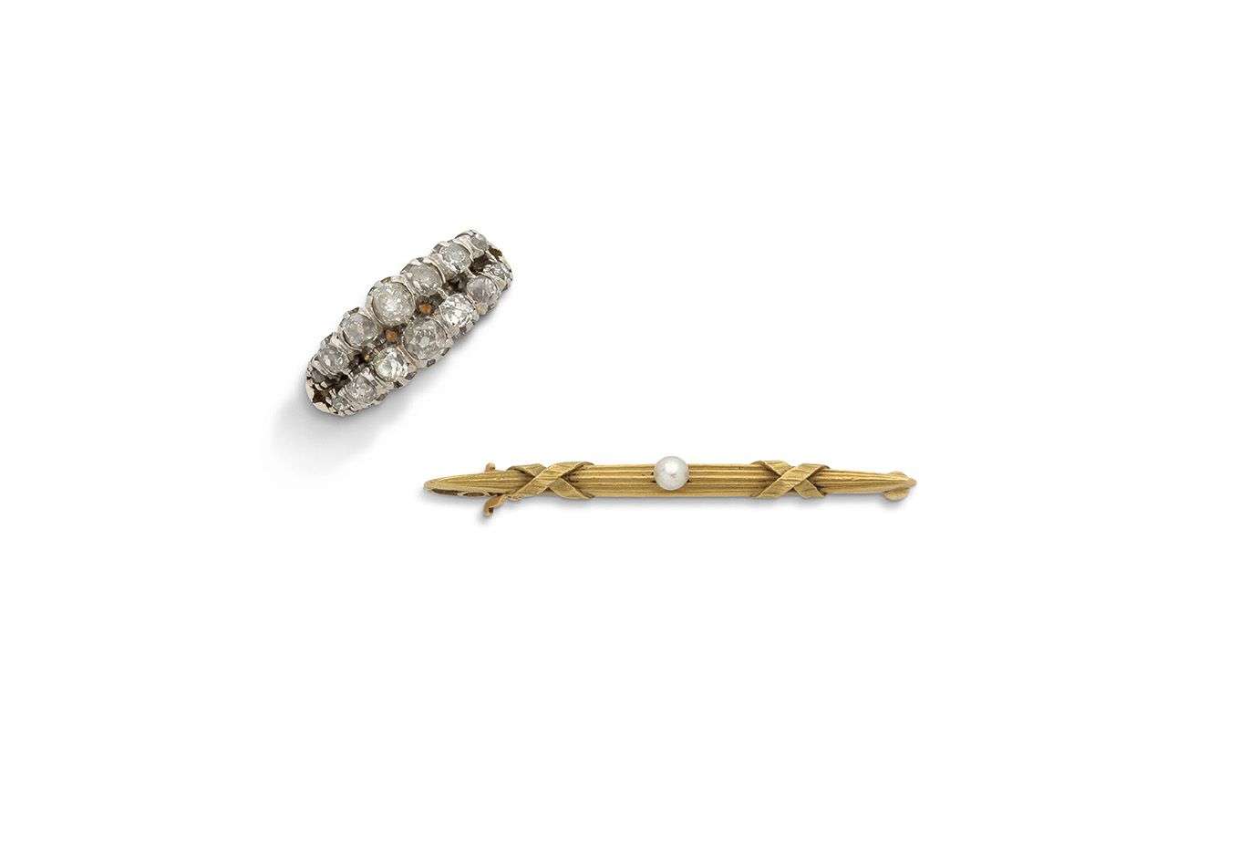 On y joint une épingle à cravate en or 18k (750)