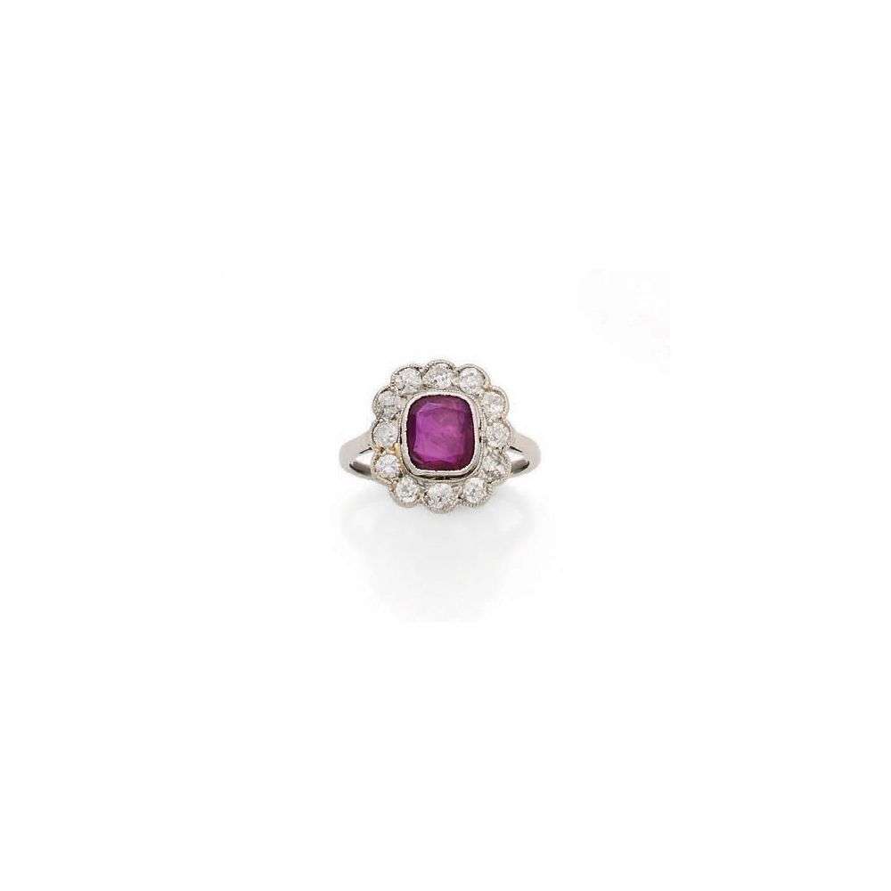 Rubis coussin et diamants taille ancienne