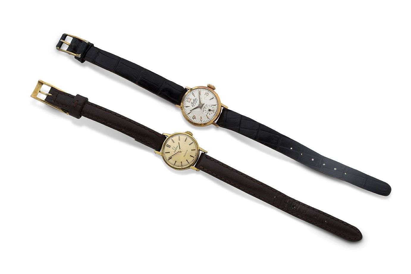 Lot of two small lady's watches, AMBRE in 18k gold and OMEGA in stainless steel
