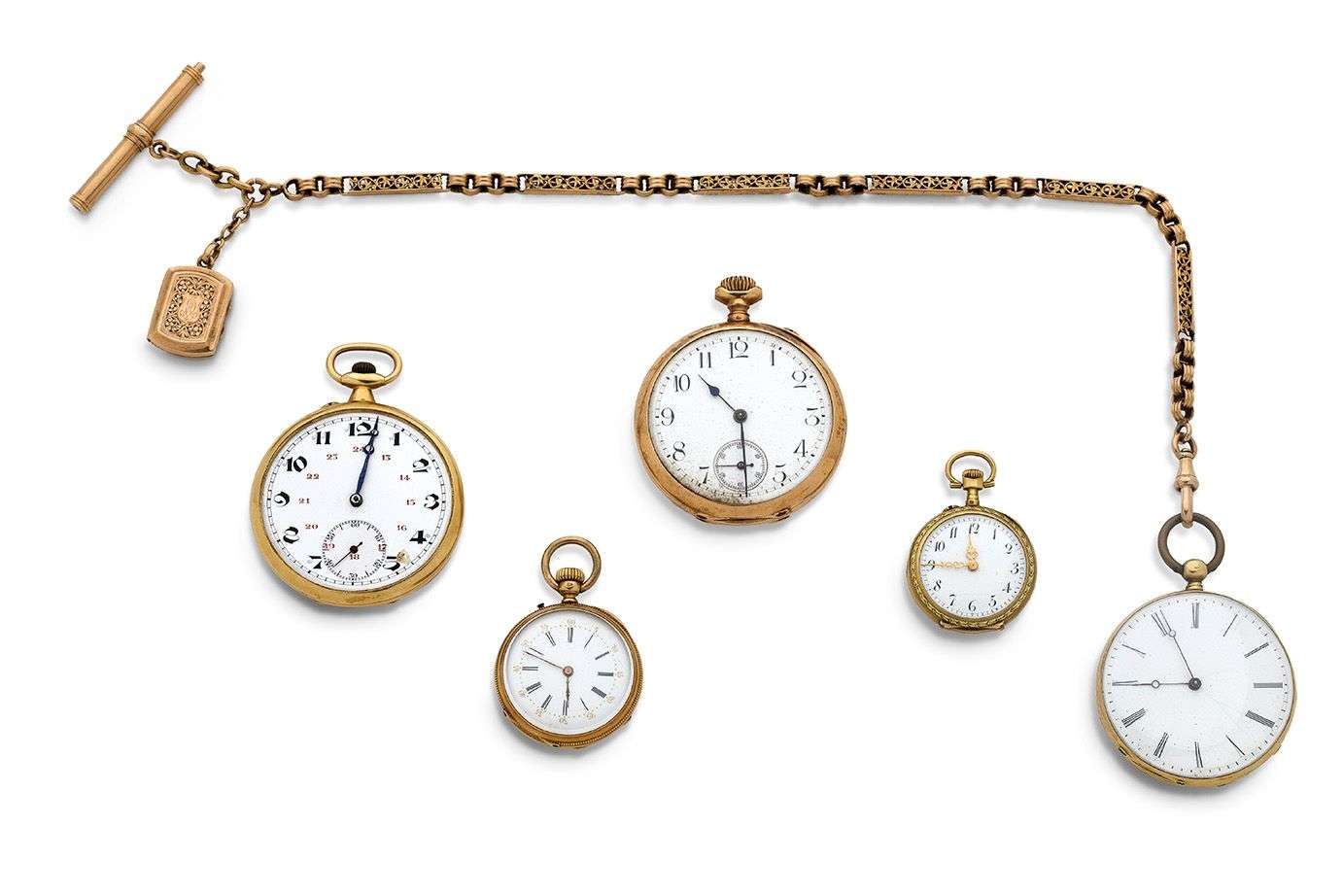 A set of 5 gold (18k) pocket watches