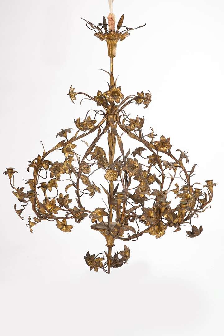 en bronze ciselé et doré orné de branchages fleuris à treize feux.