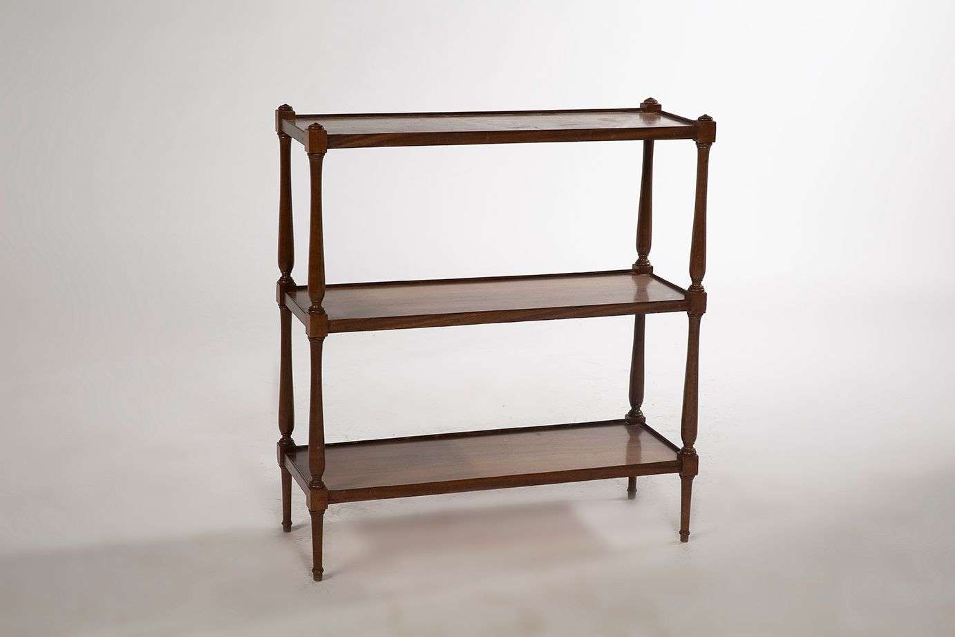 en acajou mouluré et sculpté à trois niveaux. Les montants en colonne se temrinant par des pieds fuselés.