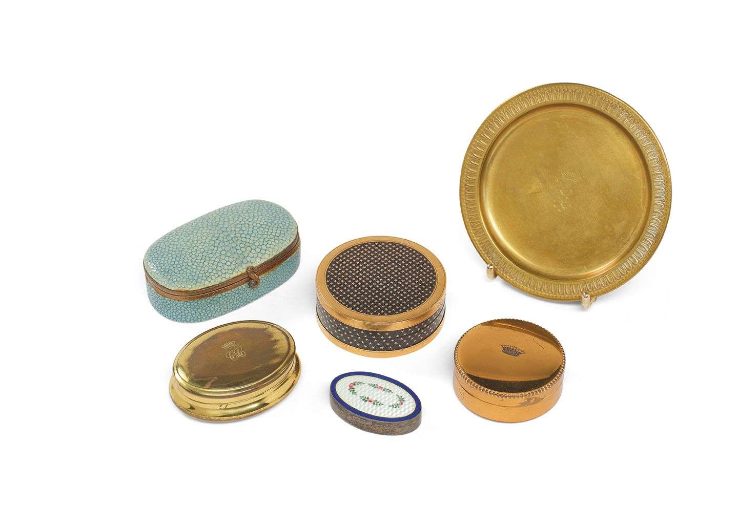- Une boîte circulaire à monture en or jaune, poinçon feuille de chêne.