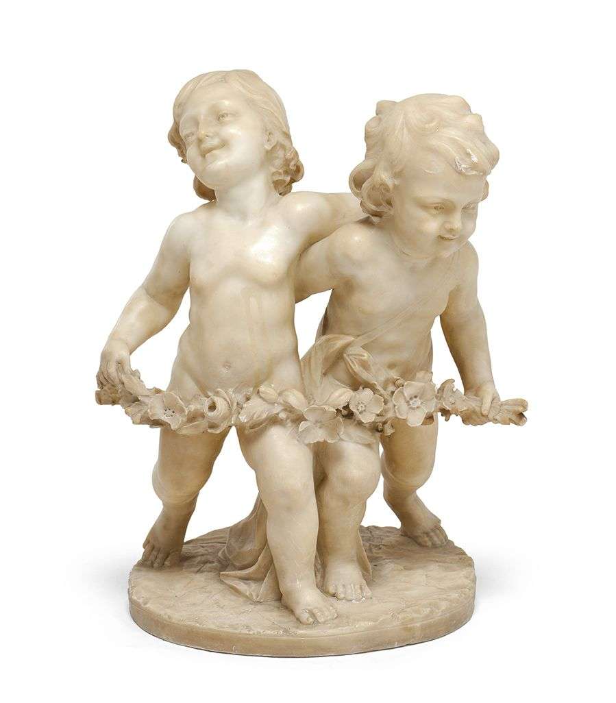 Groupe en marbre blanc sculpté.