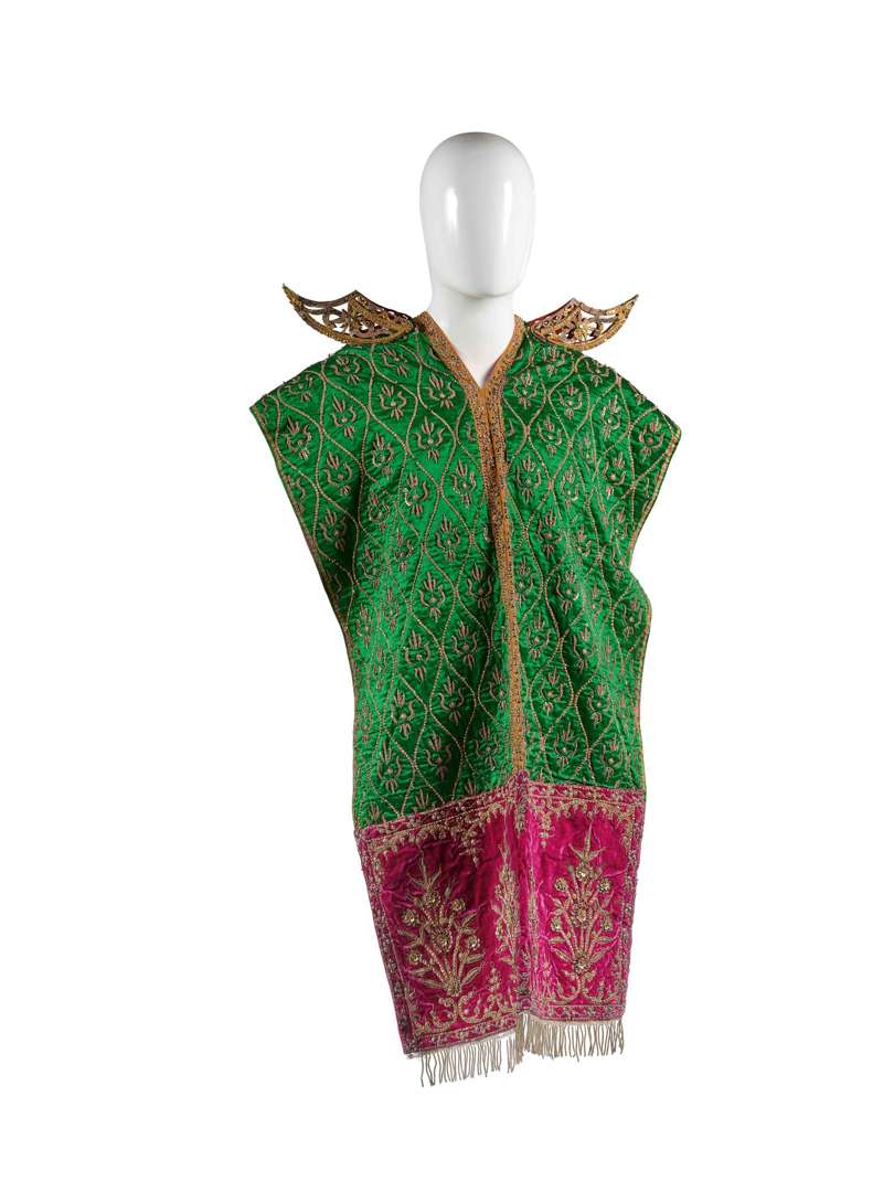 deux longs pans en satin de soie vert