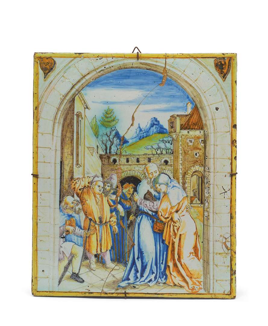 Plaque en faïence émaillée polychrome. Le décor en plein d'après la composition éponyme par Albrecht Dürer (1471 - 1528)