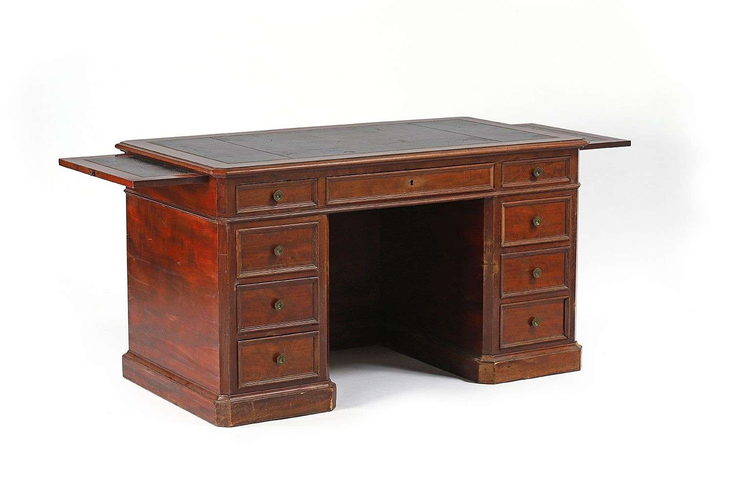 Le plateau de forme octogonale gainé de maroquin vert doré aux petits fers et ouvrant par deux tirettes latérales.