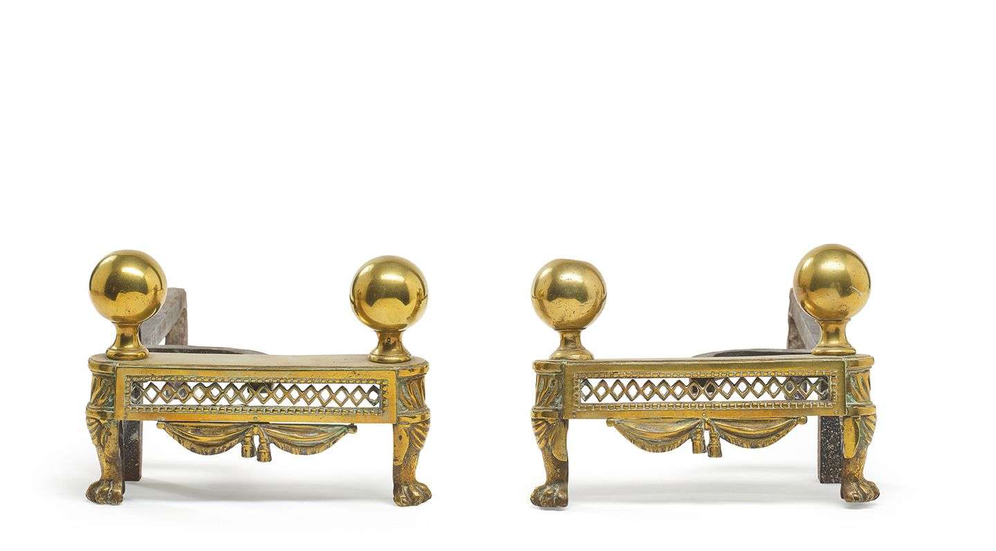 en laiton ornés de sphères et à décor ajouré de losanges. Les pieds en griffes.