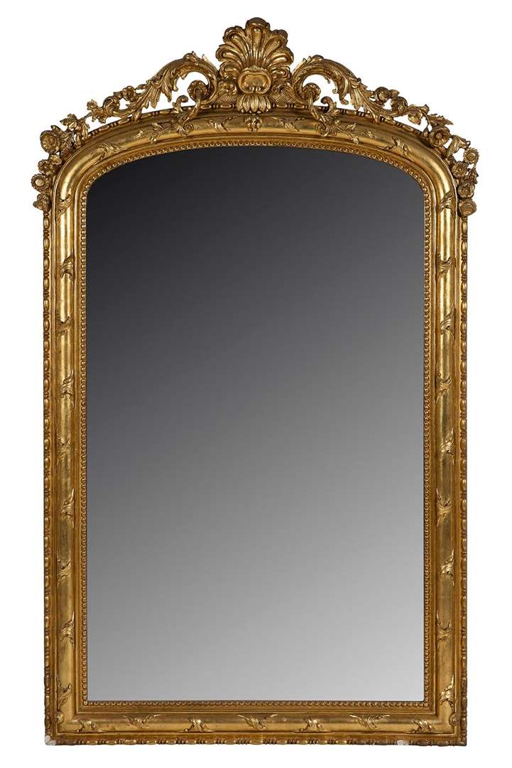 en bois et stuc sculptés et dorés. Le fronton à décor ajouré et orné d'une coquille.