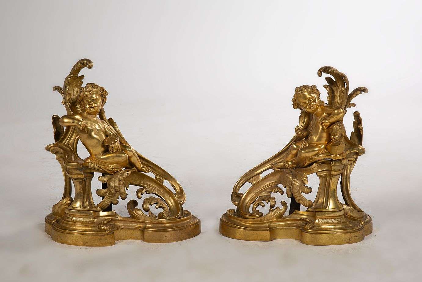 Décor des allégories de la Peinture et de la Sculpture sous les traits d'enfants en pendants,