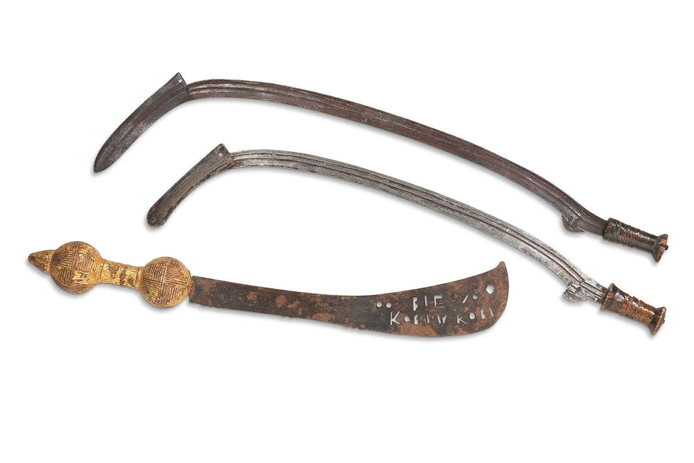 Comprenant un sabre Ashanti et deux sabres à lames courbes.