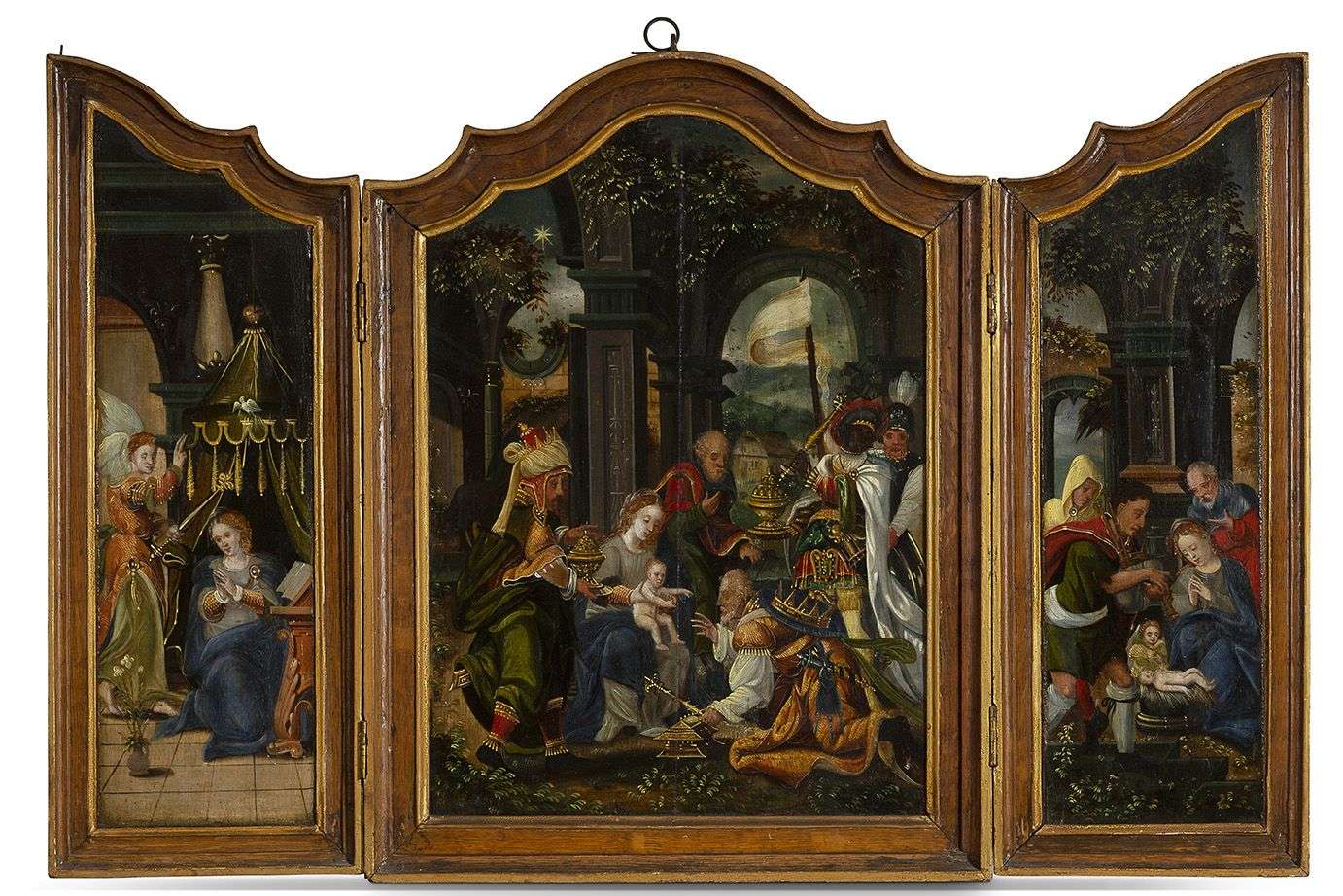 Triptyque : L'Adoration des Mages | deux volets latéraux représentant l'Annonciation et l'Adoration des bergers