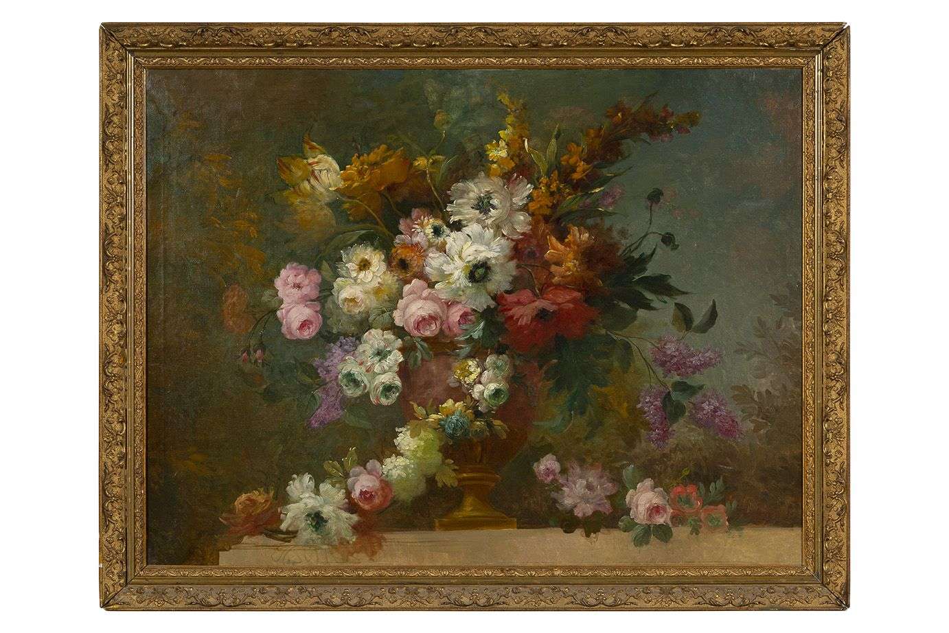 Cut flowers in a bronze vase, original canvas