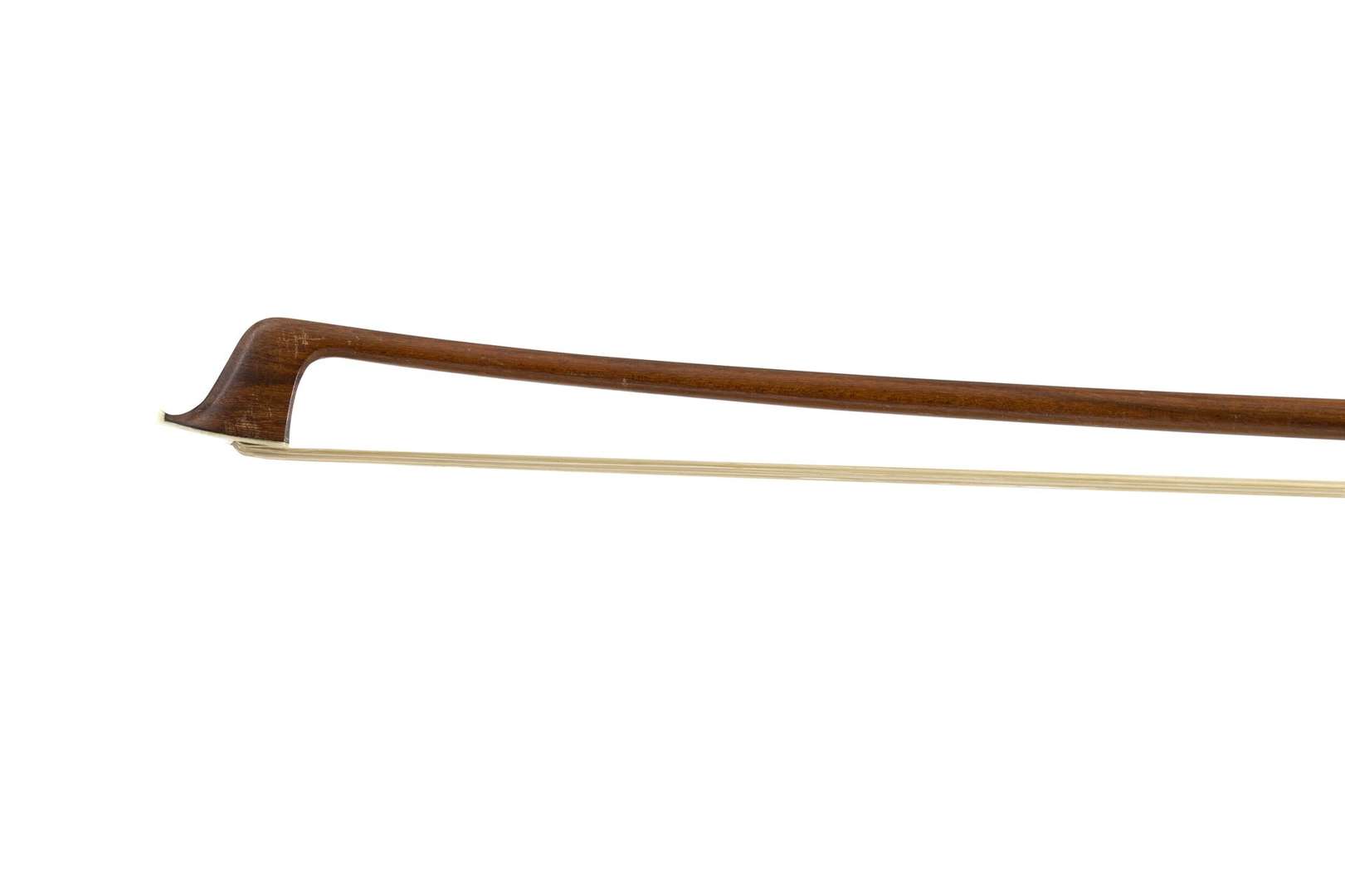 Baguette en bois de pernambouc montée de sa hausse et de son bouton ébène et maillechort.