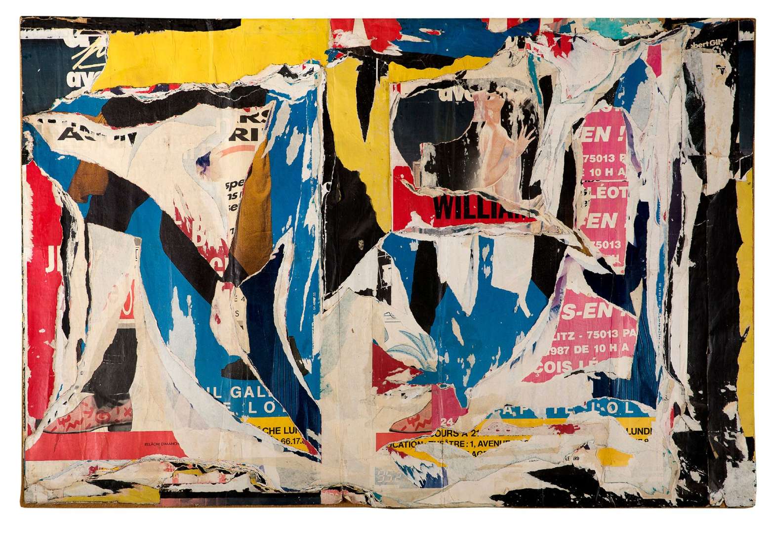 L’oeuvre que nous présentons, Rue Bobillot / Place d'Italie, s’inscrit dans la continuation de sa démarche. Cette lacération de petite dimension est particulièrement représentative de la philosophie des affichistes français. En effet, ils prennent les affiches comme elles viennent, en ne modifiant pas le résultat et pour preuve les oeuvres ont pour titre leur lieu de réalisation.
