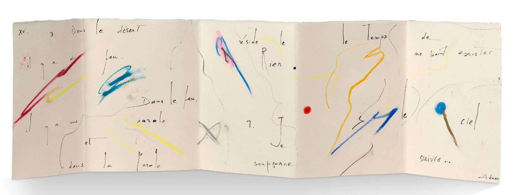 Livre manuscrit peint sur leporello, signé et datée par Etel Adnan et par Anne Slacik, signé des initiales des artistes et numéroté sur l'emboitage 4/16