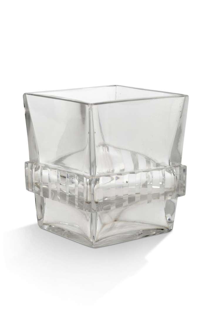 - Vase à section carrée, la panse ceinte d'un décor bagué.