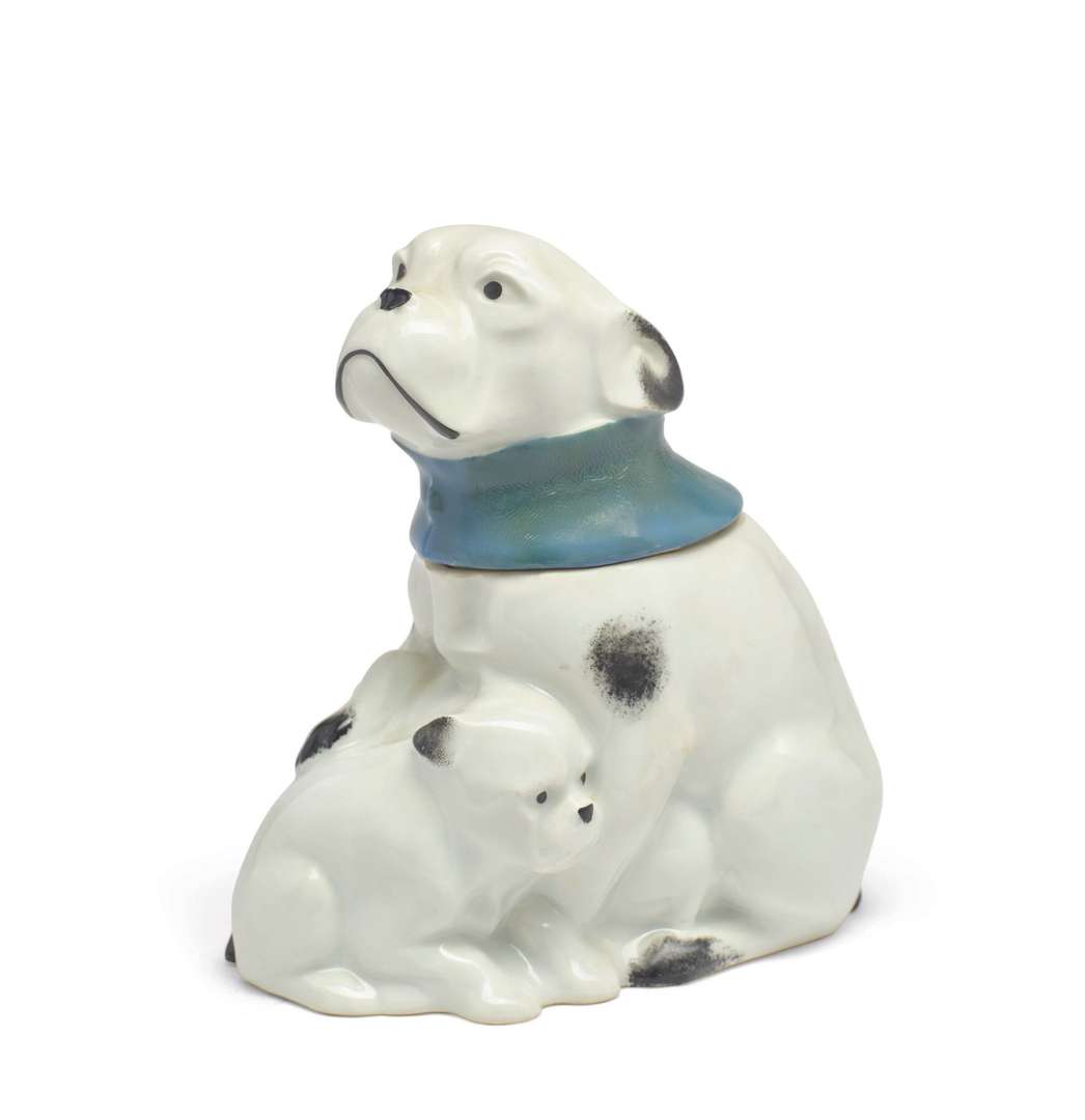 Pot modèle ‘Famille bouledogue’ en porcelaine