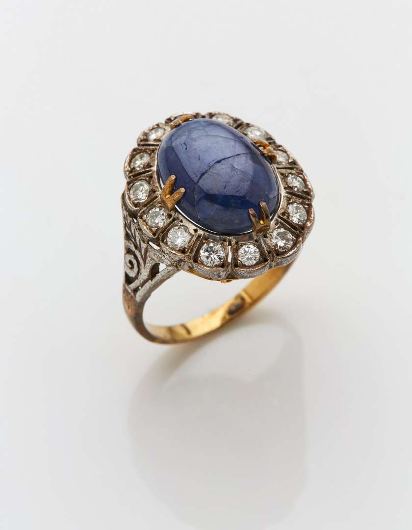 Saphir cabochon étoilé, diamants taille ancienne~