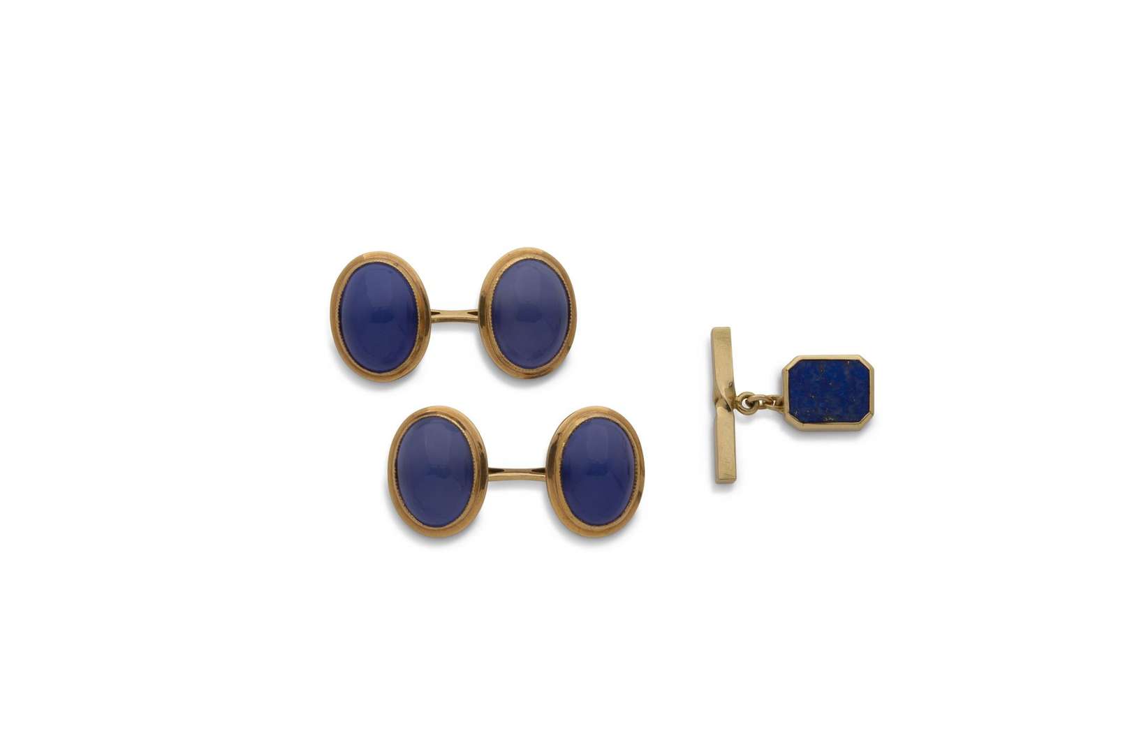 On y joint un bouton de manchette en or 18k (750 et lapis lazuli