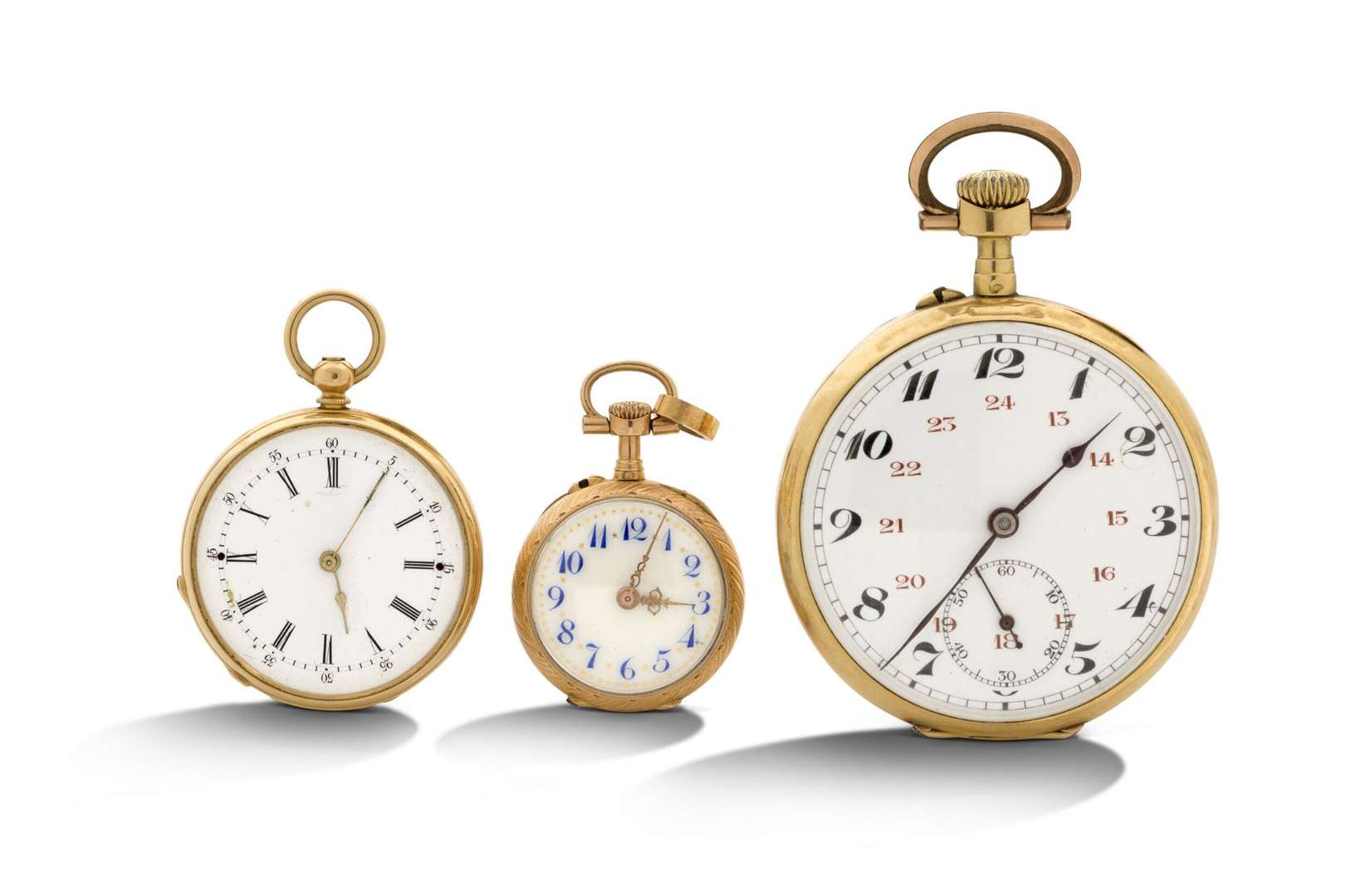 A set of 3 gold (18k) pocket watches