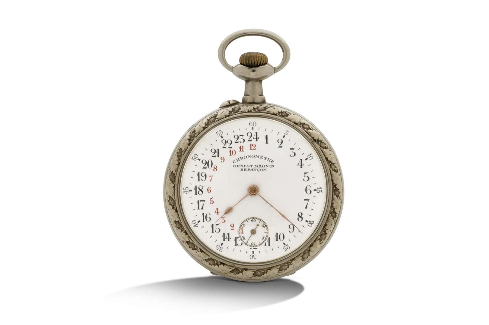 Cadran : émail avec indication des 24h, petite trotteuse et minuterie chemin de fer, signé