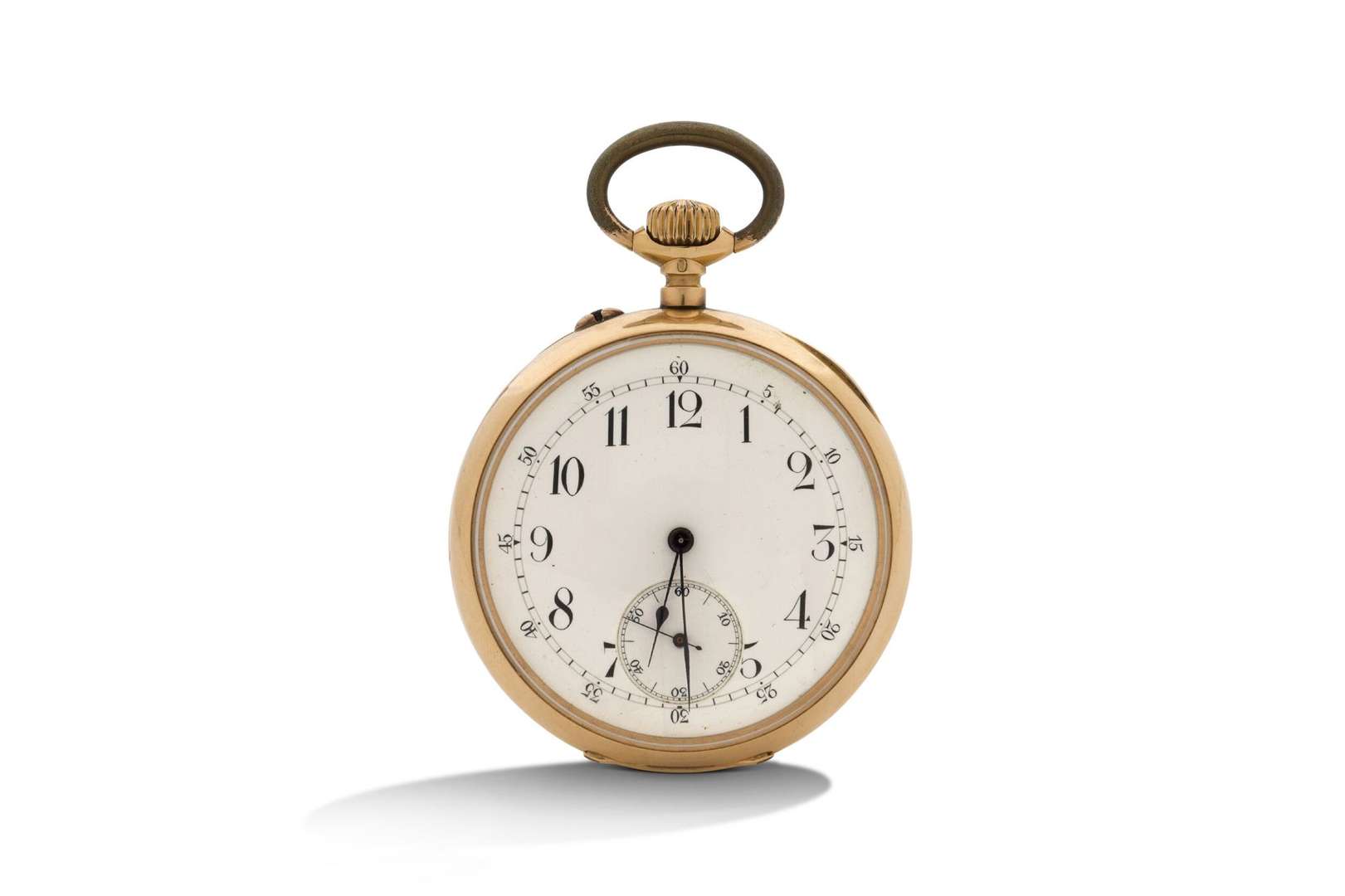 Cadran : émail blanc, chiffres arabes pour les minutes et les heures peints, trotteuse à 6h, signé