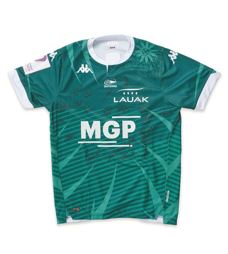 Préparé pour l'Aviron Bayonnais face à Leicester le 19 décembre 2020. European Rugby Challenge Cup, signé par les joueurs.