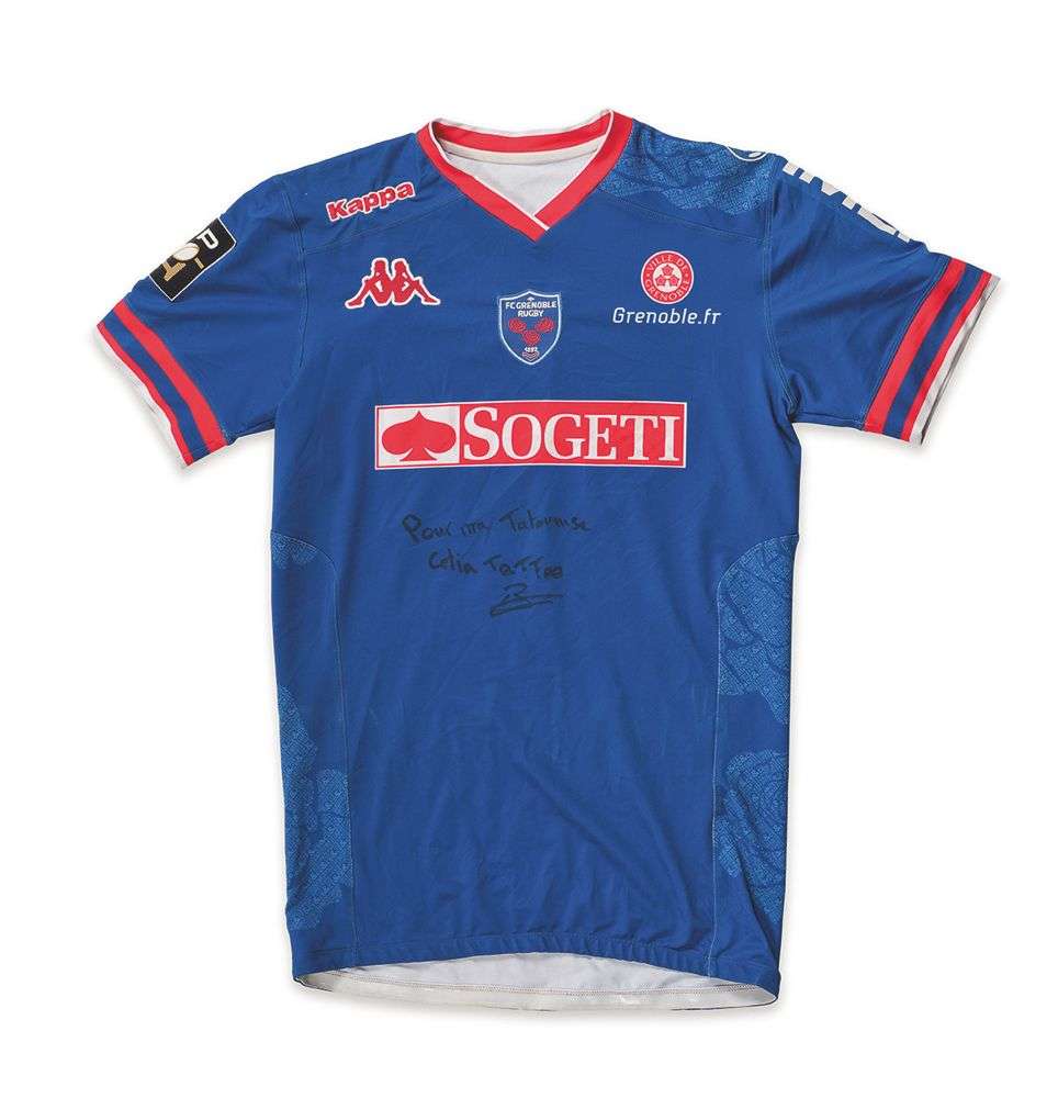 Porté pour le Grenoble FC, saison 2013 - 2014. Signé par le joueur. Top 14.