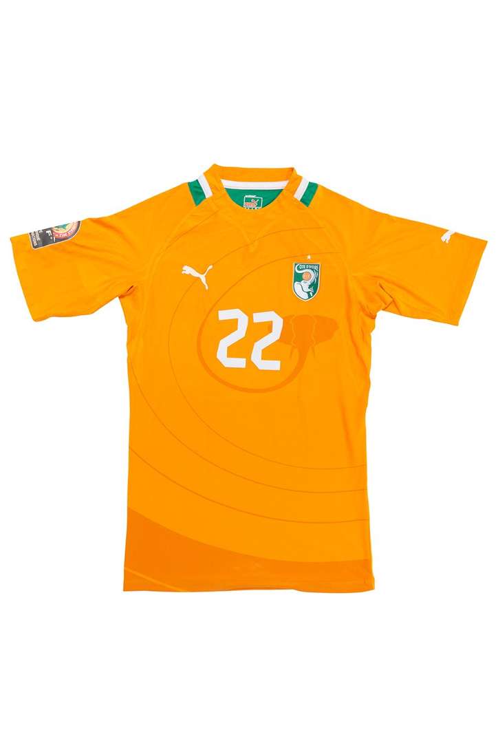 Maillot n°22 porté pour la Côte d'Ivoire en Coupe d'Afrique des Nations 2012, match à déterminer. Marque Puma. Taille. Certificat d'authenticité (COA) sur demande.