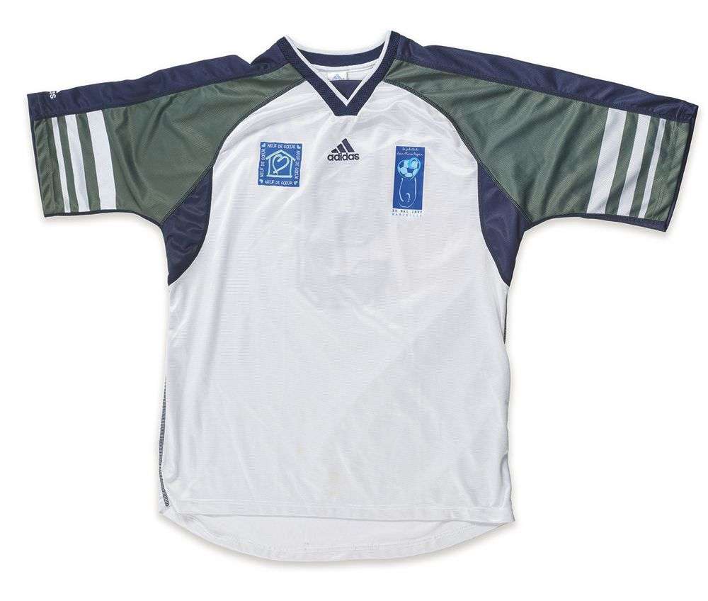 Distribué aux journalistes lors du jubilé de Jean-Pierre Papin le 30 mai 1999 à Marseille. Le maillot Adidas est logoté de l'association Neuf de Coeur ainsi que des références du jubilé. Au dos, le numéro ‘9' et le nom ‘J.P. Papi