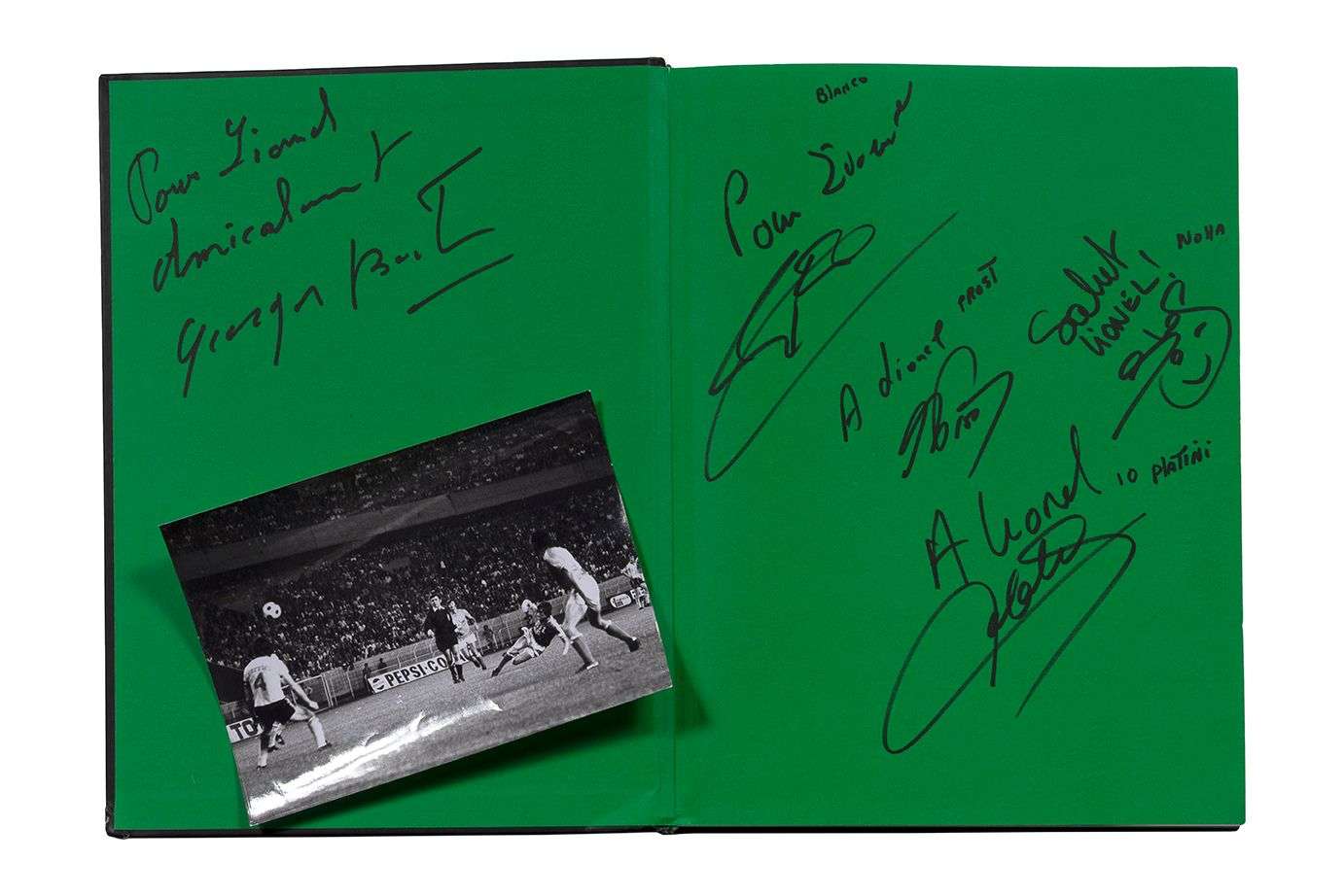 Signé par l'ensemble de l'équipe des verts de 76. S'y ajoute un livre de l'histoire des verts avec la signature de chaque joueur sur les pages concernées ainsi qu'une photographie de presse d'une repri