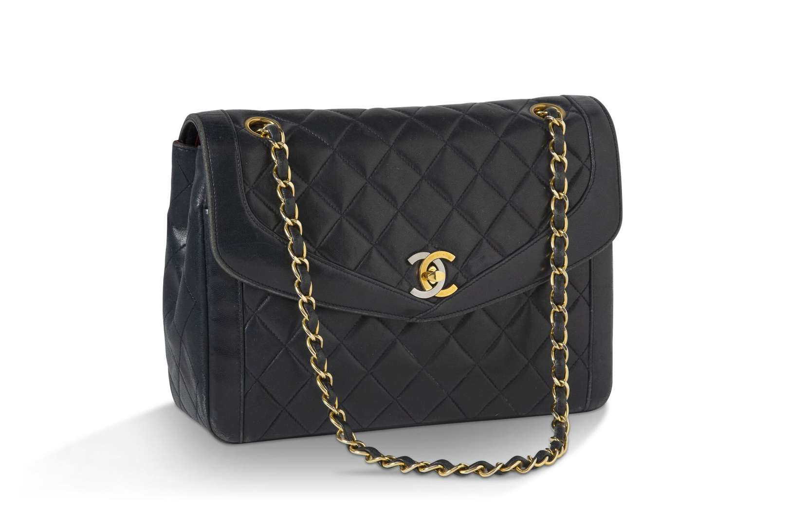 Sac en cuir matelassé marine avec garniture en métal doré.