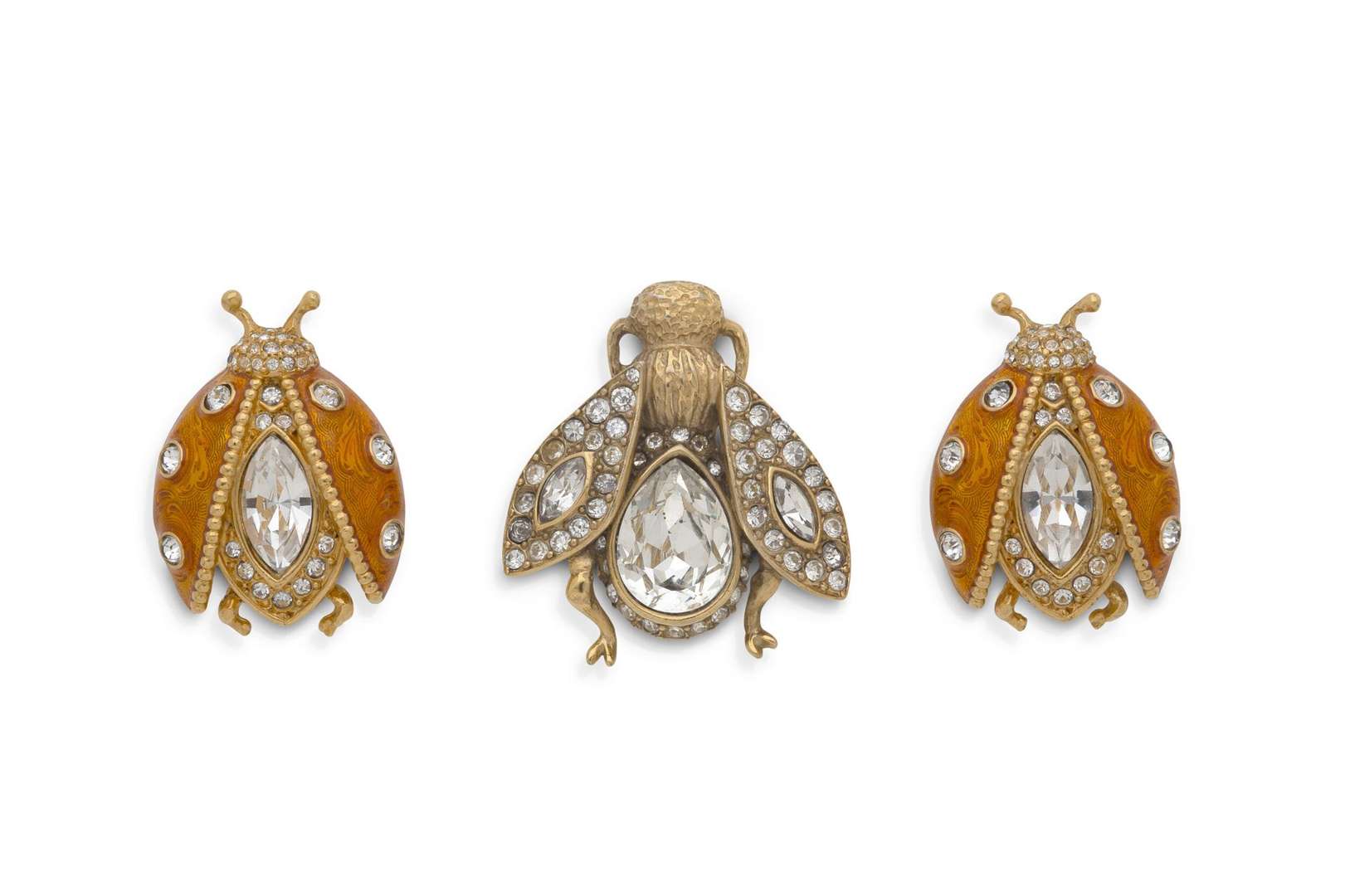 Lot de deux clips d'oreilles "coccinelles" et une broche "abeille"