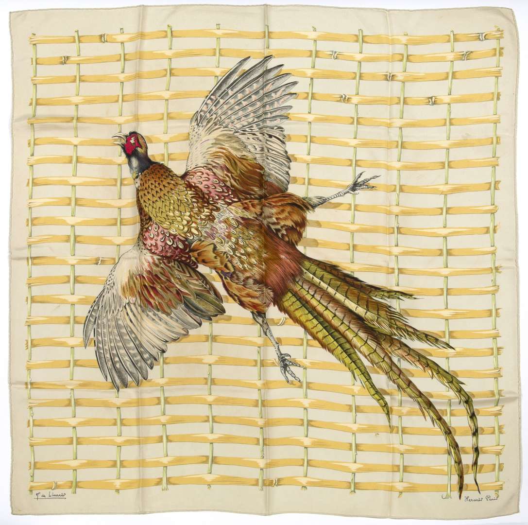Carré de soie dessiné par Henri de Linarès dans les tons de beige et vert.