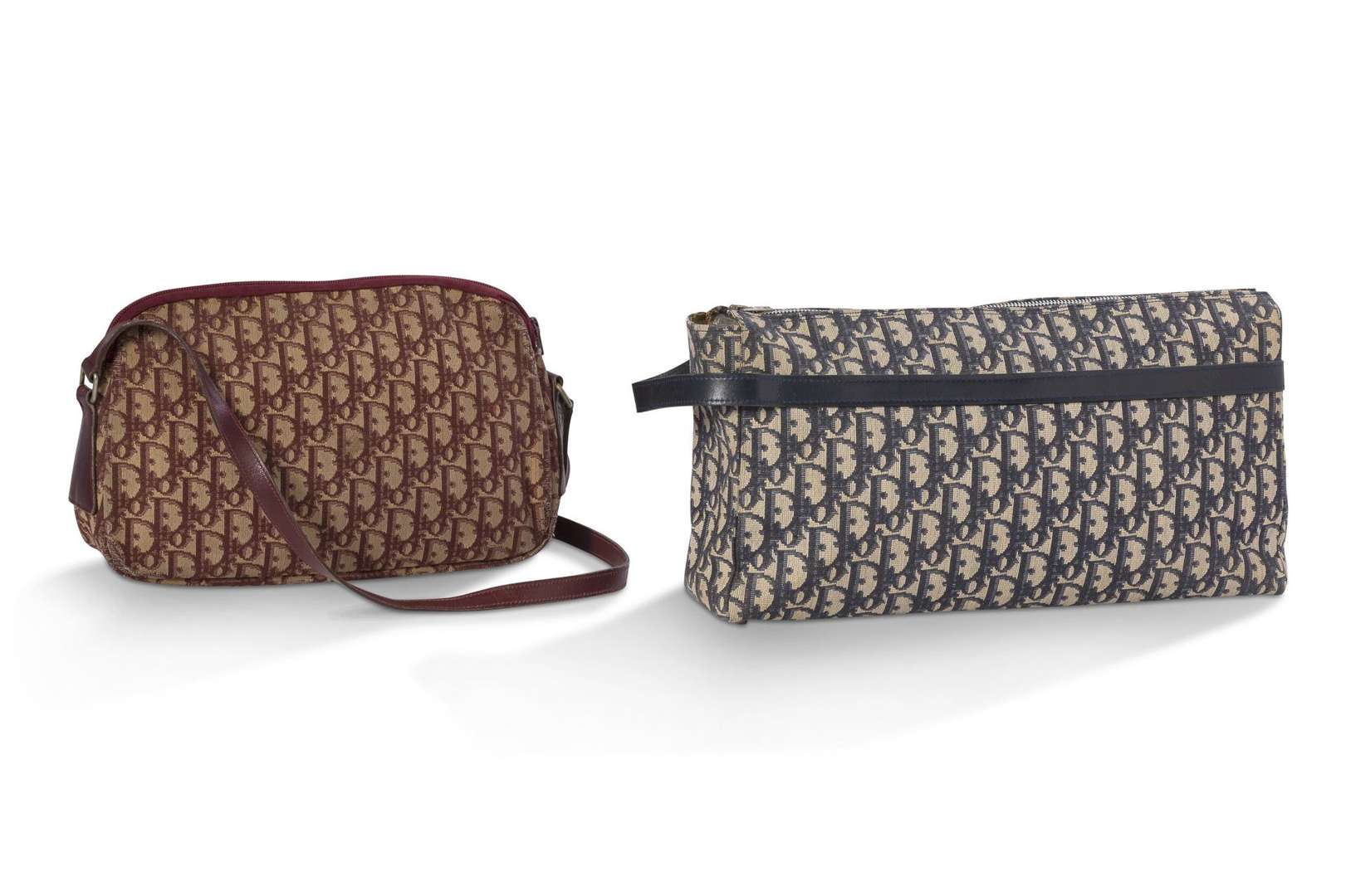 - Sac en toile monogrammée et cuir bordeaux. Anse bandoulière en cuir.