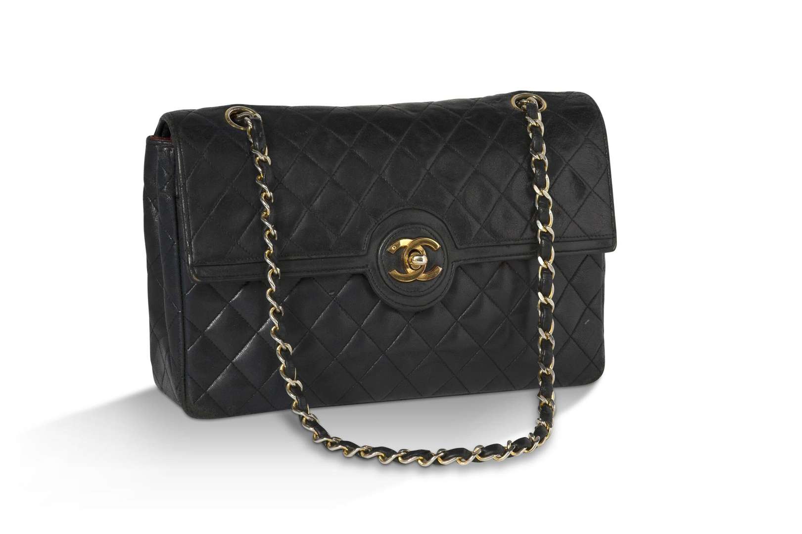 Sac matelassé en cuir noir avec garniture en métal doré. Une poche plaquée au dos. Anse bandoulière chaîne entrelacée de cuir.