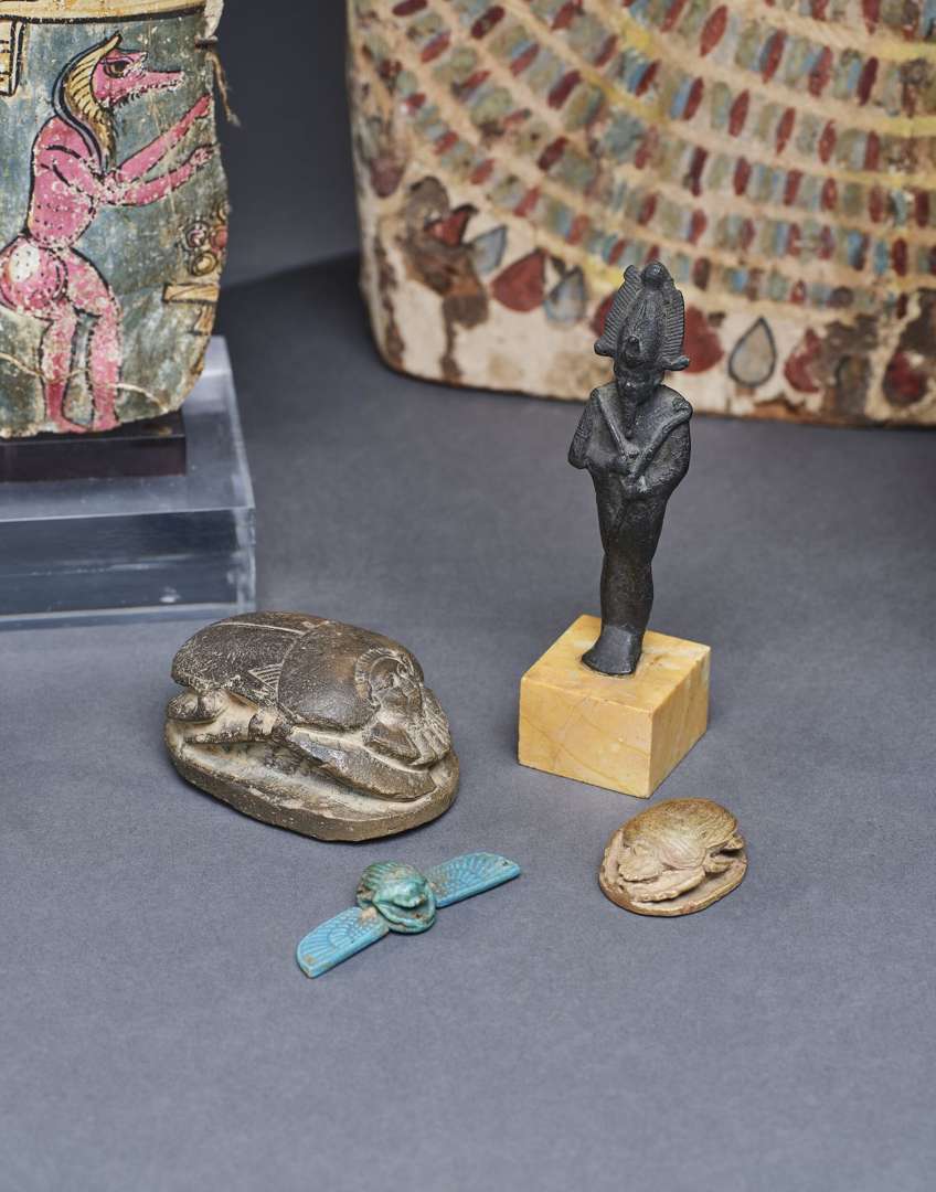 On y joint une statuette d'Osiris debout