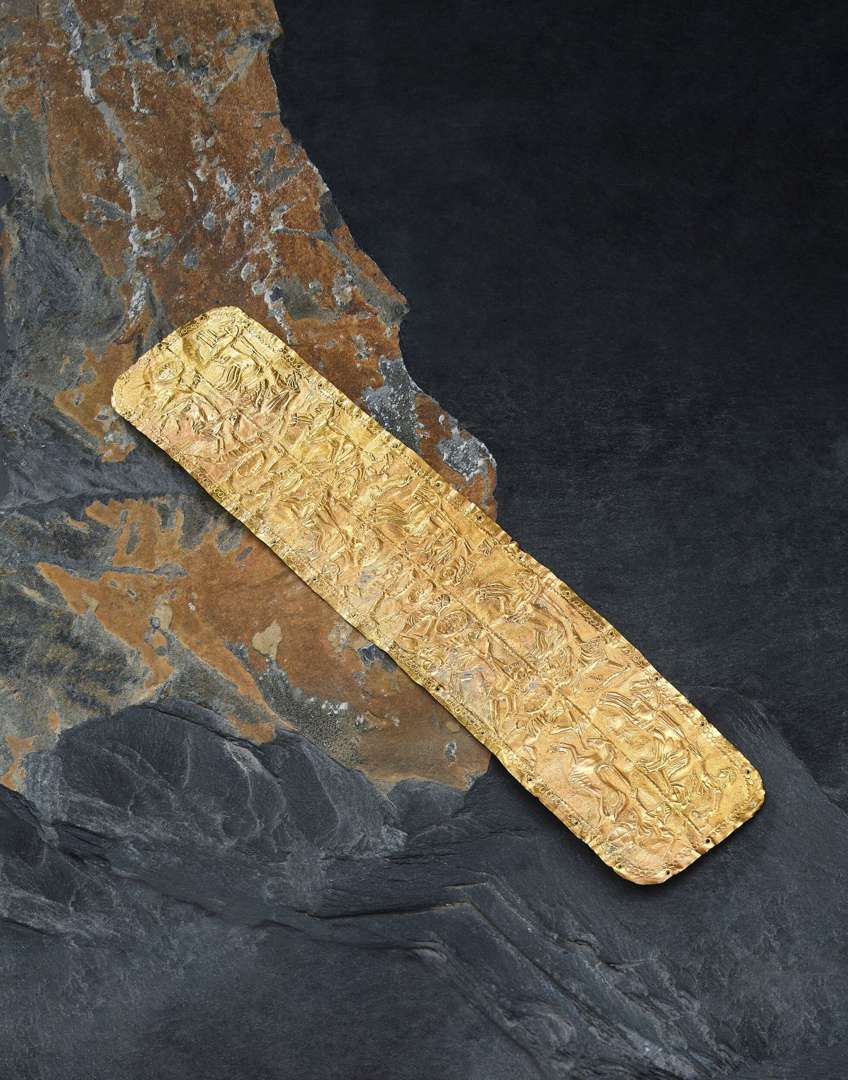 en or jaune garni en repoussé de scènes