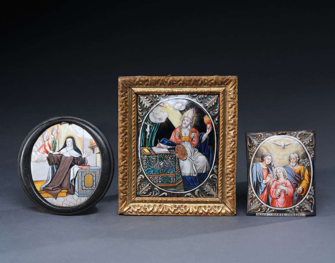 TROIS PLAQUES ÉMAILLÉES VOTIVES