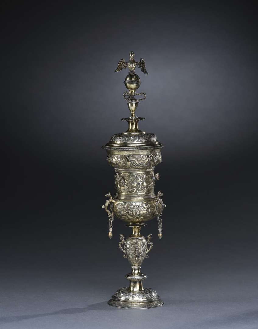 ciselé. Le couvercle sommé d'une aigle aux ailes