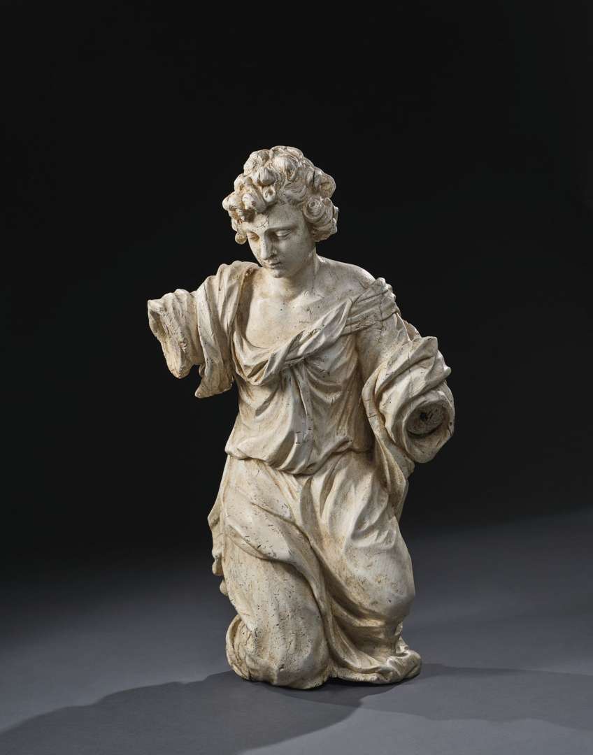 en bois sculpté. Agenouillé et vêtu