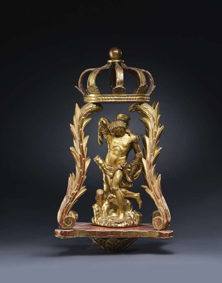 Hauteur Saint Sébastien : 34 cm - Hauteur dais : 63 cm