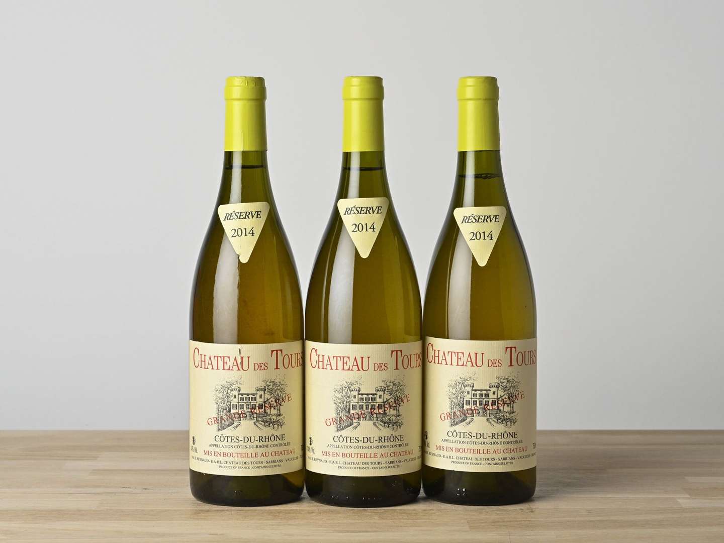 3 B CÔTES DU RHÔNE GRANDE RÉSERVE Blanc (1 accroc clm.) - 2014 - Château des Tours