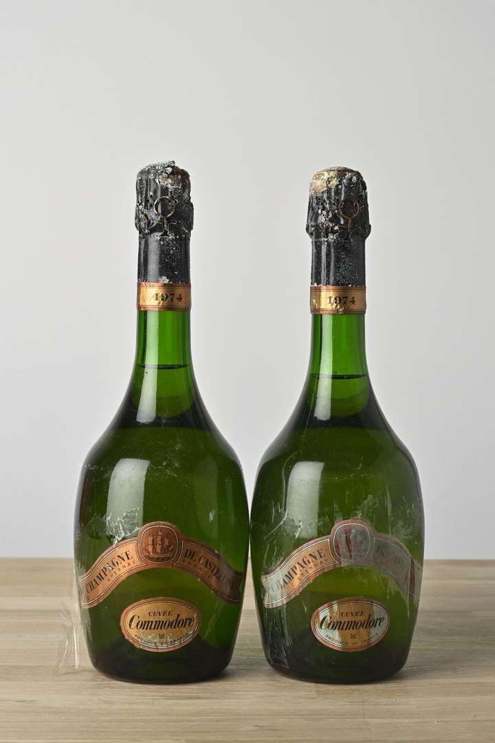 2 B CHAMPAGNE BRUT CUVÉE COMMODORE (1 L.B| coiffes abimées| bel aspect) - 1974 - De Castellane