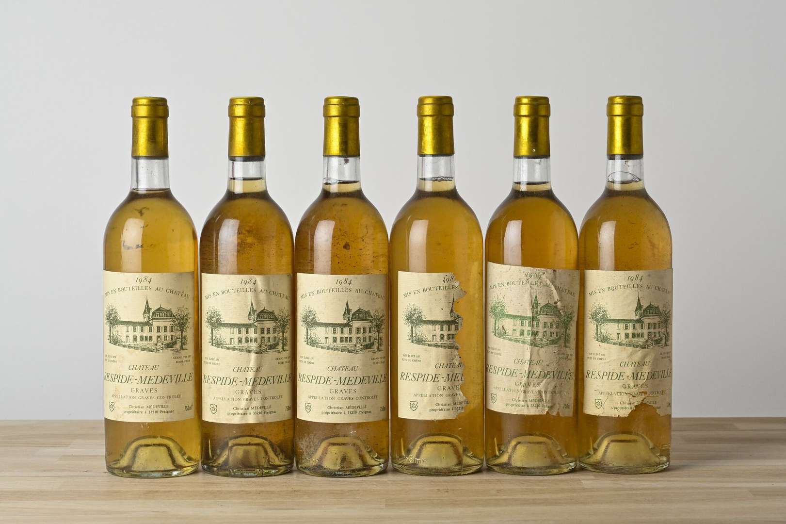 6 B CHÂTEAU RESPIDE-MEDEVILLE Blanc (1 B.G.-| 3 e.t.h. légères| 1 e.a. et 2 e.t.a.) - 1984 - Graves
